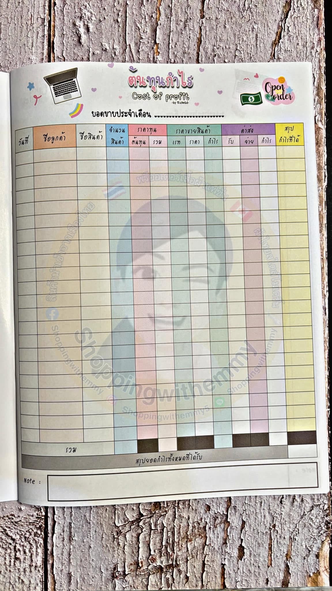 สมุดบัญชีบันทึกต้นทุนกำไร Shoppingwith. กระดาษพิมพ์เขียนขนาด 80 แกรม ขนาดสมุด 17.6 x 25.0 ซม. จำนวน 20 แผ่นสุทธิ