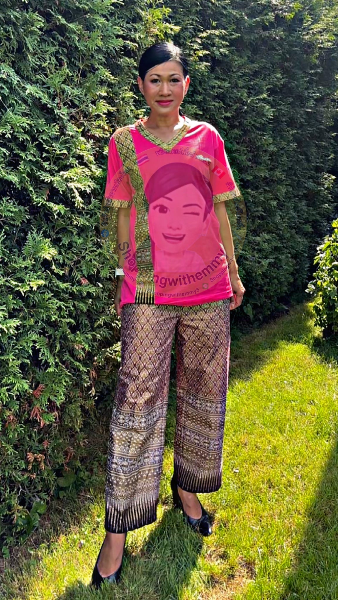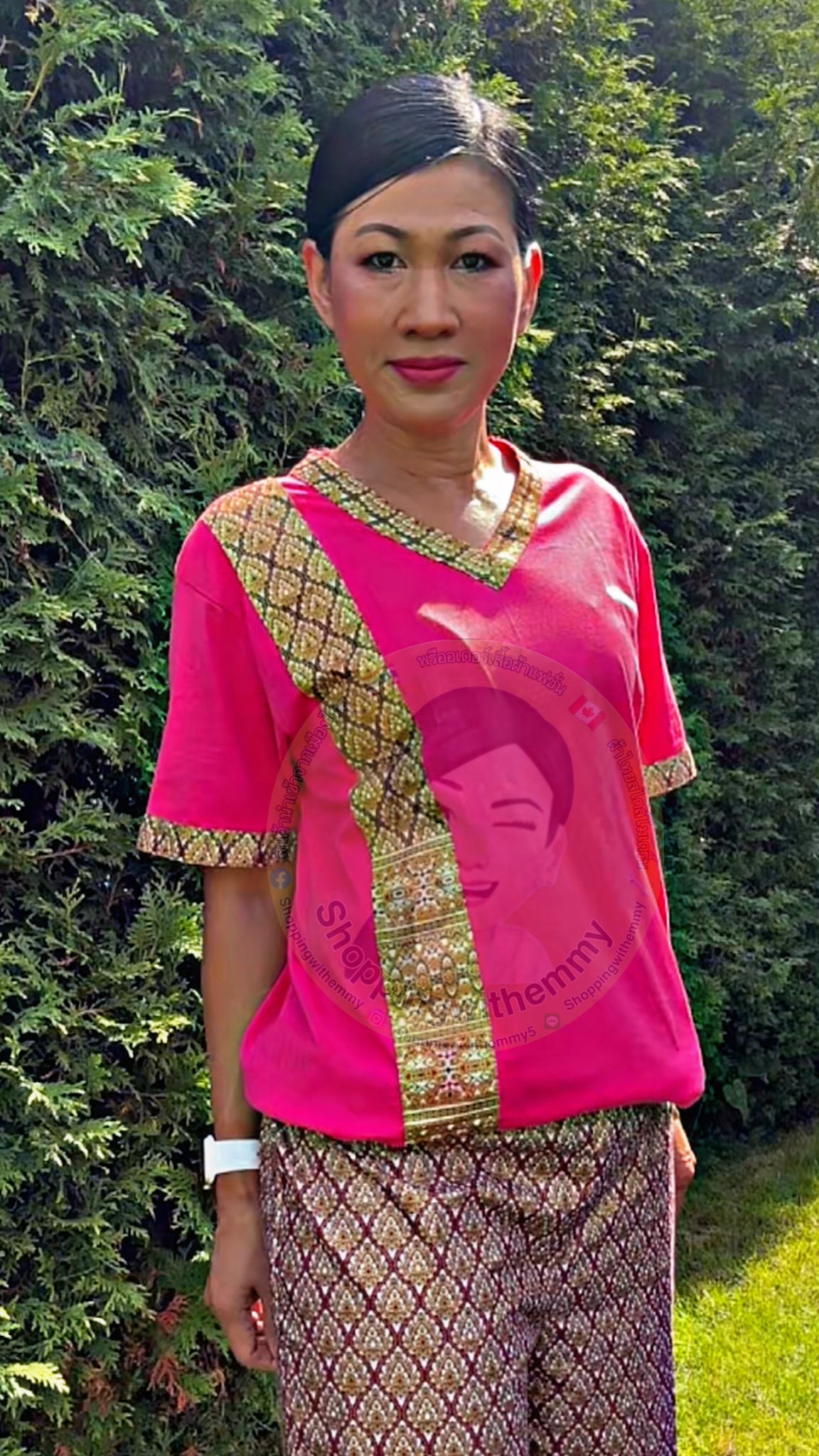 เสื้อยูนิฟอร์มนวดไทยเสื้อยูนิฟอร์มร้านอาหารไทย #สีชมพู ไซส์ M (เฉพาะเสื้อ)